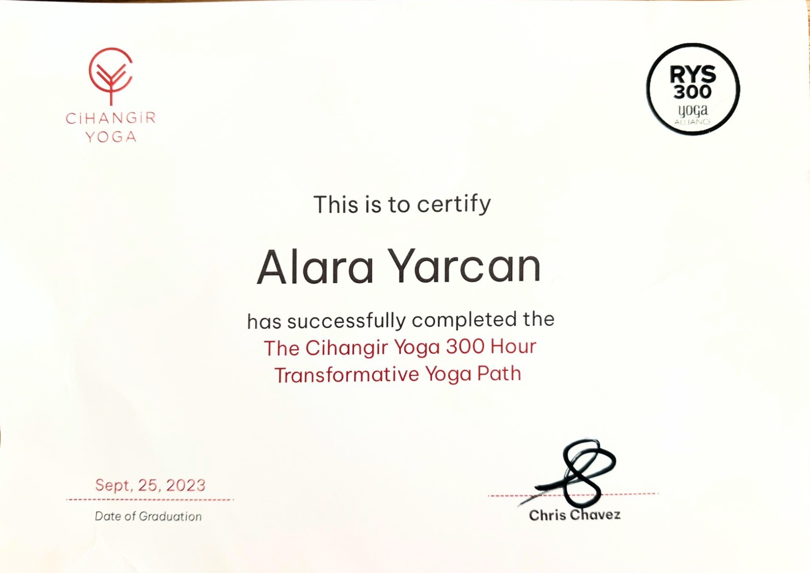 200 Saatlik Eğitim - 2018 Cihangir Yoga’da Zeyneb Uras, Naz Şaman, Barış İşcan’dan alarak tamamladım.